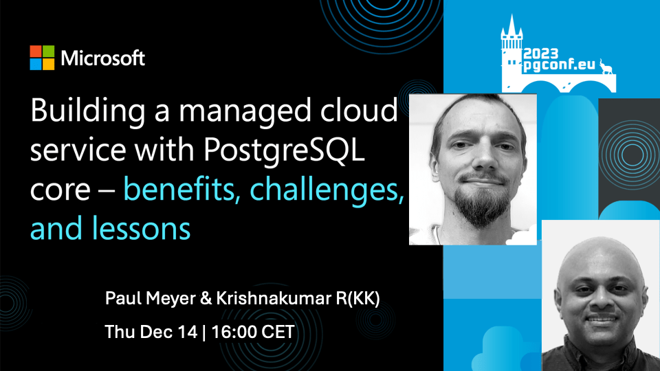 It’s feels like just yesterday that Azure Flexible Server for PostgreSQL went GA. It has been an amazing & rewarding journey to have been a part of building and running this service which is growing incredibly. We have prepared a talk from the unique vantage point of lessons learned from building a managed cloud service with upstream PostgreSQL at its heart. Although I personally won’t be able to talk at the PG Conf EU 2023, Paul Meyer will rock the stage with our talk.